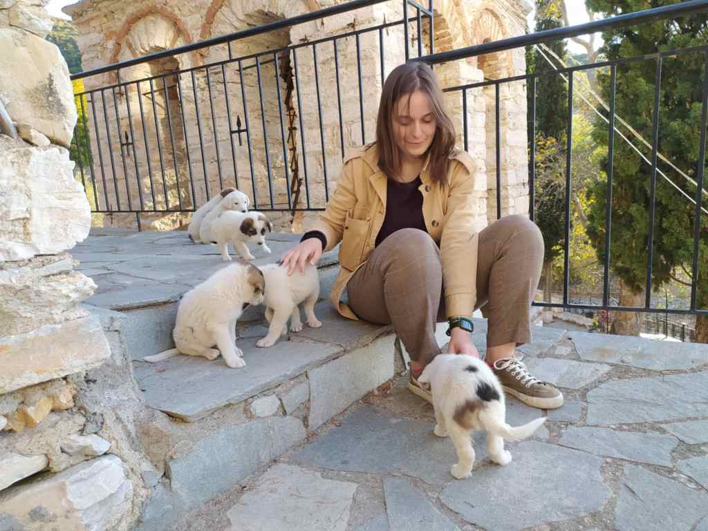 Later, we met yet another Nikos – this one from a nonprofit we sometimes work with – and took a walk around The Valley, a park-like stretch with a waterfall, a lake, and a forest path. It’s also the area his NGO helps clean, which made the whole place feel even more alive and cared for. After that, we visited his grandparents’ old, abandoned house, still guarded by a cat and a couple of chickens who looked like they owned the place.